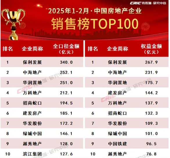3月3日,据克而瑞地产商讨中心发布的敷陈数据,本年前两个月保利发展以全口径销售额340亿元位居第一,紧随后来的两名折柳为中海地产和华润置地,销售额折柳为252.1亿元和251亿元。