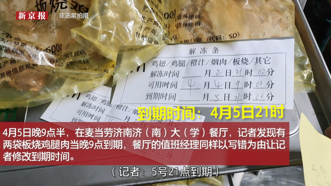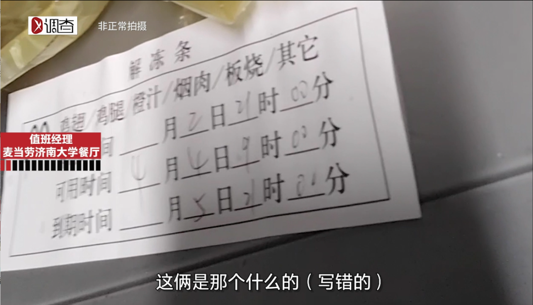 麦当劳济大餐厅,位于济南市中区济南大学主校区内,与学校食堂相邻,由于东说念主不可平常出入校园表里,这家餐厅的主顾群体果然齐是在校大学生。给过时食材换标签“续命”的情况,也时常在这家餐厅发生,值班司理致使径直参与其中。